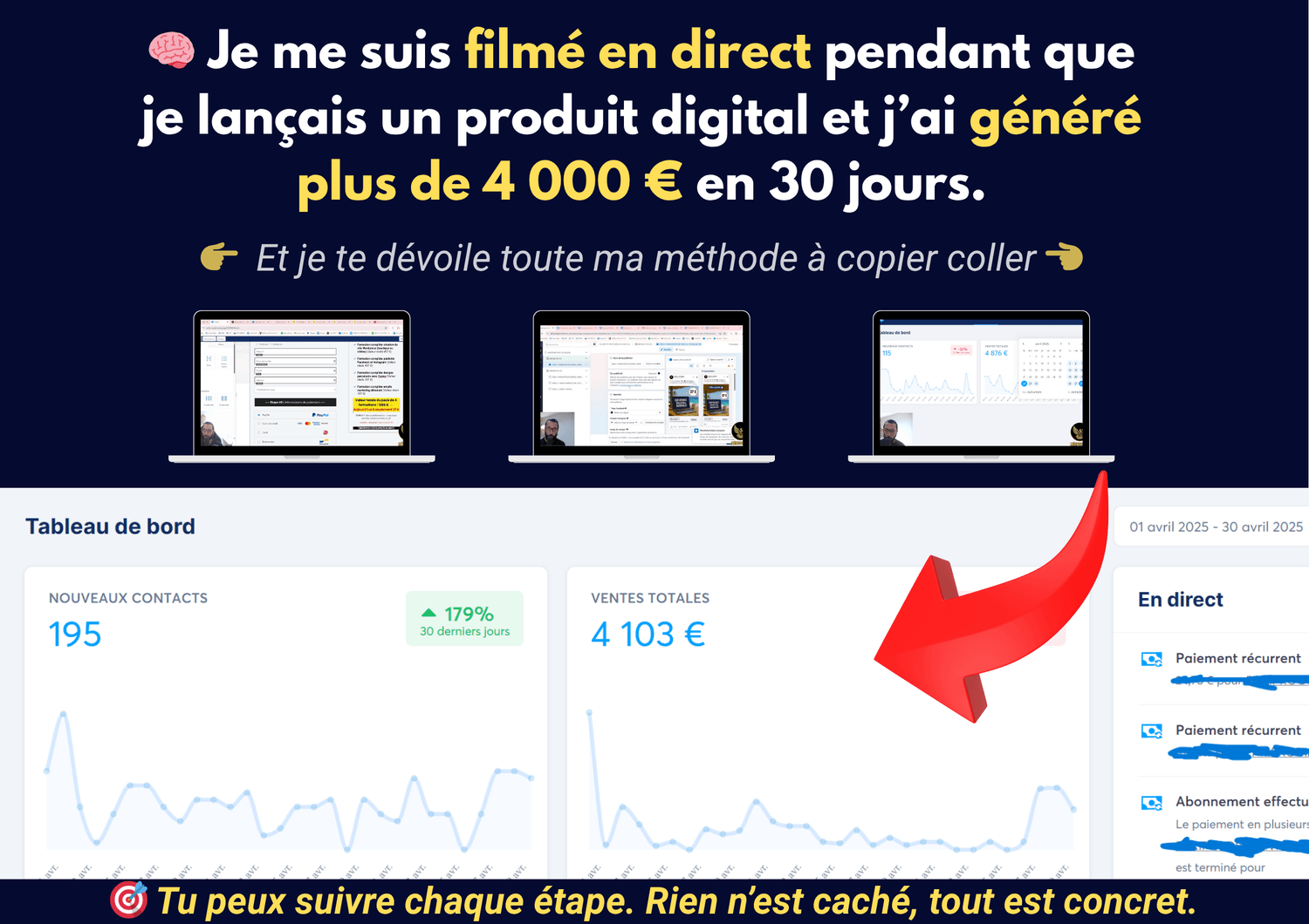 đ§ Je me suis filmĂ© en direct pendant que je lançais mon produit digital qui a gĂ©nĂ©rĂ© plus de 4 000 ⏠en 30 jours (en 2025).