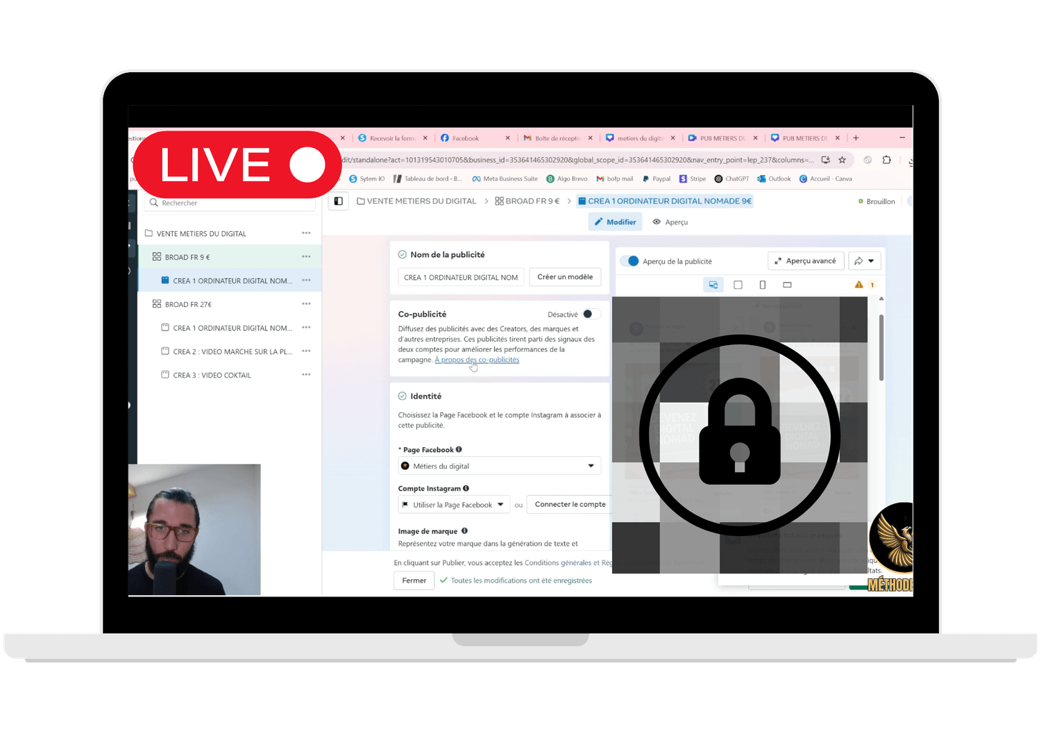Des campagnes Meta Ads ventes et prospects diffusées en live